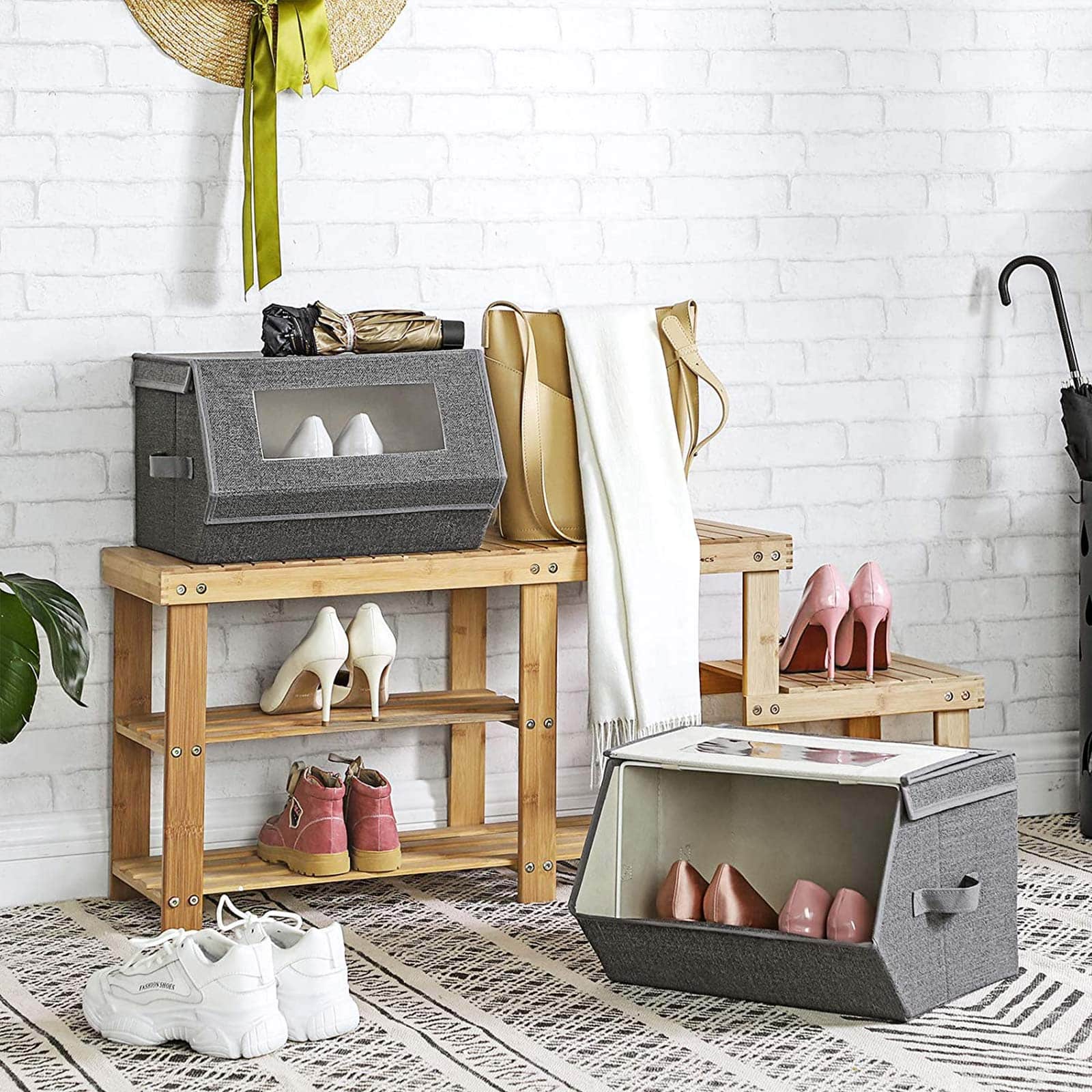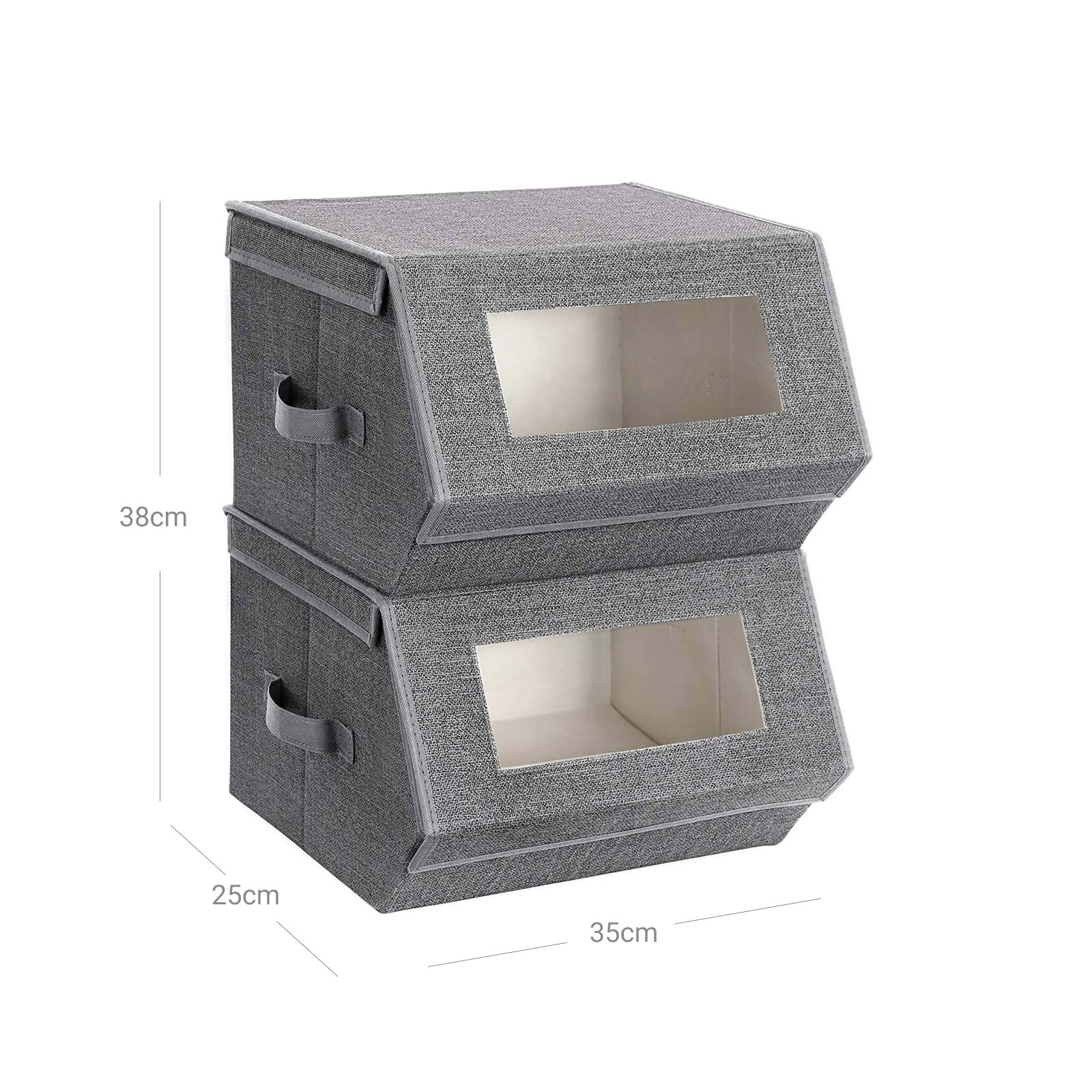 Skaidrus langas: pagaliau jums nebereikės knaisiotis po netvarkingą stalčių vien tam, kad rastumėte porą kojinių! Šios 2 medžiaginės dėžutės yra su skaidriu langu, kad galėtumėte lengvai matyti jų turinį ir greitai pasiekti reikiamus daiktus.