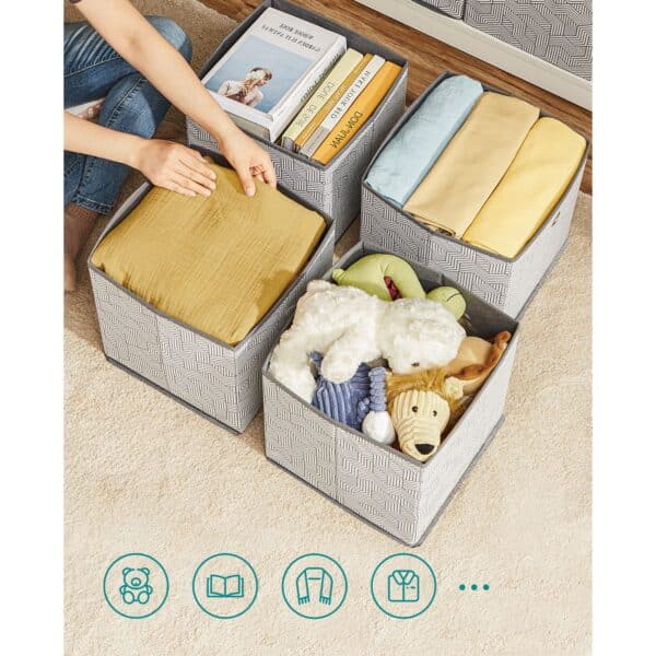 Ar kada nors pastebėjote, kad įvairių smulkmenų vis daugėja, o jūsų namai tampa chaotiški? Tada šis daiktadėžių rinkinys yra būtent tai, ko jums reikia! Tai tikras saugojimo talentas, kuris puikiai tiks drabužių spintoje, knygų lentynoje, po kavos staliuku, ant rašomojo stalo ar vaikų kambaryje. Dėžės taip pat telpa į daugumą kubelių lentynų. Šias dėžutes galite naudoti kartu arba atskirai pagal poreikį – pasirinkimas yra jūsų.
