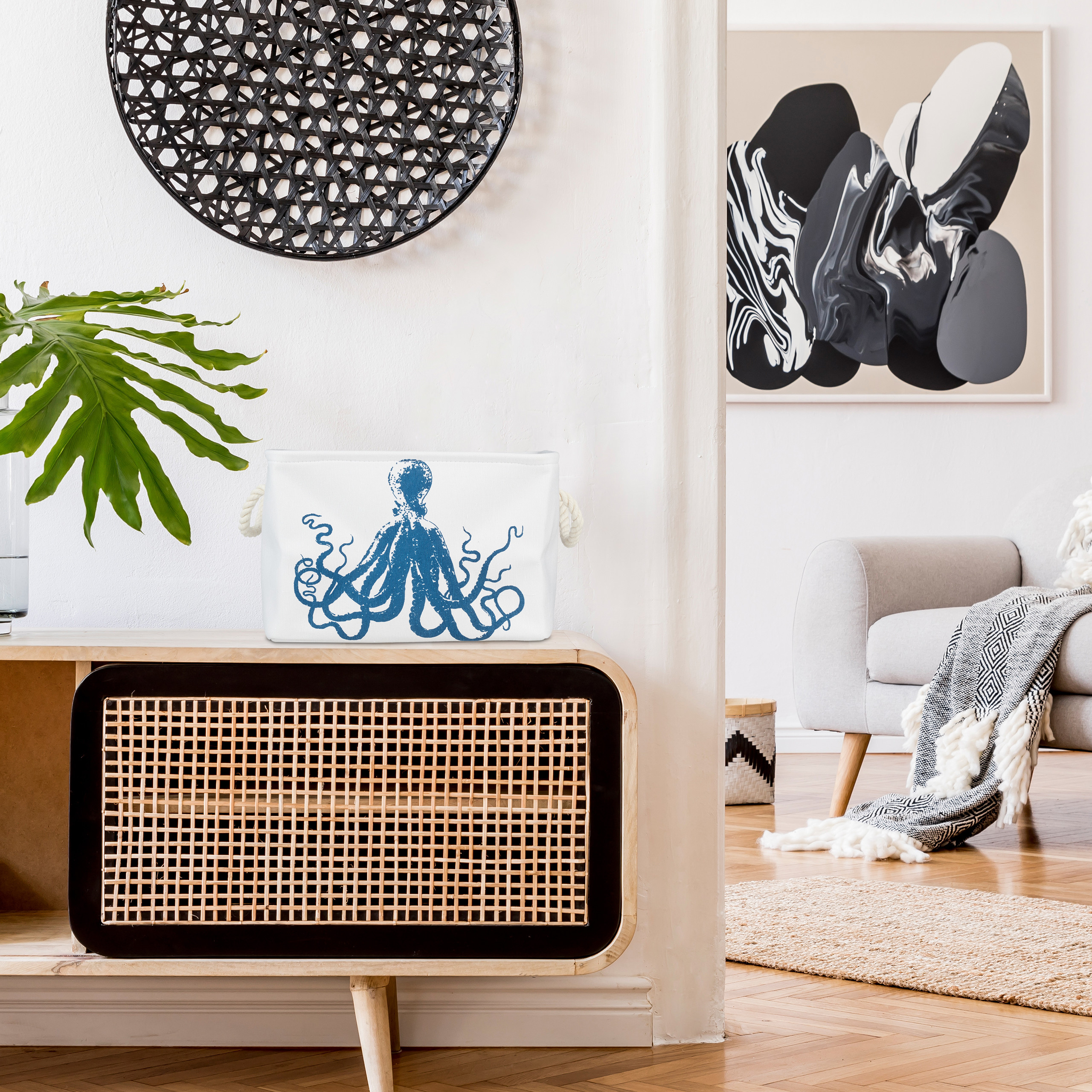 Įneškite tvarkos ir stiliaus į savo namus su šia elegantiška ir funkcionalia daiktų laikymo dėže. Sukurta su jūrinio dizaino elementais, ši medžiaginė dėžė ne tik padės organizuoti jūsų erdvę, bet ir taps puikiu interjero akcentu.