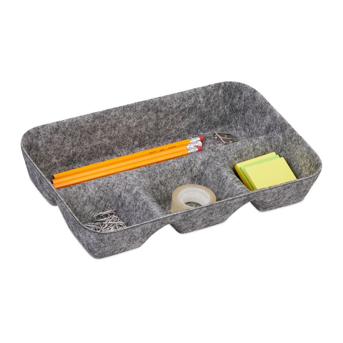 Įneškite tvarką į savo darbo vietą su šia elegantiška ir funkcionalia daiktų laikymo dėže. Sukurta iš aukštos kokybės veltinio, ši dėžė ne tik padės organizuoti jūsų stalčių turinį, bet ir apsaugos jį nuo subraižymų. Pilkos spalvos dizainas puikiai derės prie bet kokio interjero, suteikdamas jūsų erdvei modernumo ir stiliaus.