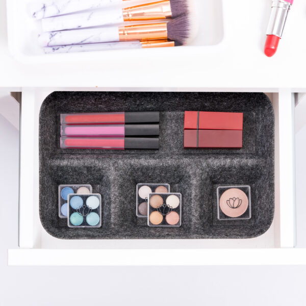 - Apsauga nuo subraižymų: Veltinio medžiaga apsaugo tiek dėžės turinį, tiek stalčių paviršių.