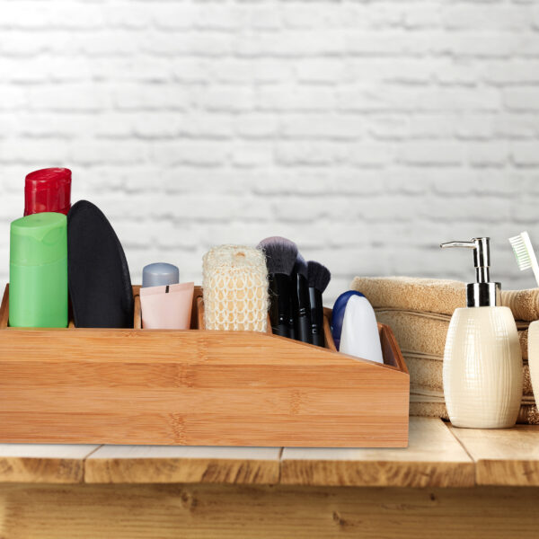 - Vonioje: Drėgmei atspari bambuko dėžutė padės sutvarkyti kosmetikos gaminius.