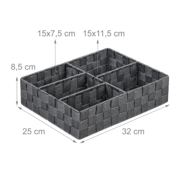 Ši daiktų laikymo dėžė su 5 skyriais suteikia pakankamai vietos įvairiems smulkiems daiktams, padedant išlaikyti tvarką ir organizuotumą jūsų namuose. Tai ne tik praktiškas, bet ir stilingas sprendimas kiekvienam namų ūkiui.