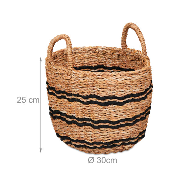 Įneškite tvarkos ir stiliaus į savo namus su šiuo dekoratyviniu austu krepšeliu, kuris ne tik padės organizuoti daiktus, bet ir taps puikiu boho stiliaus akcentu. Pagamintas iš natūralių jūros žolių su džiuto akcentais, šis krepšys yra ne tik funkcionalus, bet ir estetiškai patrauklus.