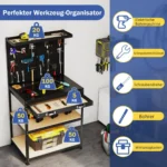 Darbastalis 81x41x156cm, juodos ir šviesiai rudos spalvos, yra universalus darbo stalas, skirtas efektyviai organizuoti jūsų įrankius ir darbo vietą. Tvirtas metalinis rėmas ir įvairios laikymo galimybės padeda palaikyti tvarką namų dirbtuvėse ar garaže. Šis darbastalis pritaikytas tiek profesionaliems, tiek mėgėjų darbams.