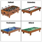 - 4 žaidimai viename: futbolas, stalo tenisas, biliardas, ledo ritulis.