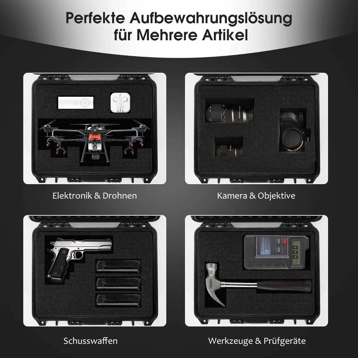- Tinka elektronikai, dronams, kameroms, objektyvams ir kitai technikai laikyti ir transportuoti.