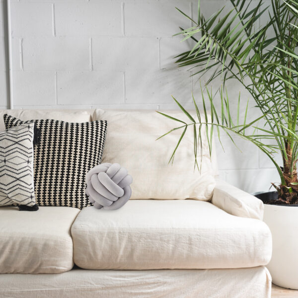 Įneškite ypatingą žavesį į savo namus su šia išskirtine dekoratyvine pagalve. Jos unikali mazguota forma ir elegantiška pilka spalva suteiks jūsų sofai ar foteliui naujų akcentų, kurie neabejotinai patrauks akį.
