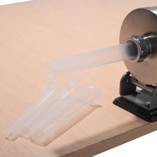 • Keturi PP pildymo vamzdeliai – lengvai valomi ir pritaikomi skirtingam dešros storio pasirinkimui.