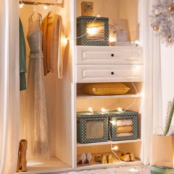 Kiekvienais metais prieš Kalėdas kyla tas pats chaosas – „Į kokią dėžutę įdėjau raudonus rutuliukus?“ „Kur varpeliai?“ Išbandykite šias laikymo dėžutes iš SONGMICS! Su jomis be ilgų paieškų galite rasti savo kalėdines dekoracijas – tarsi burtų keliu! Be to, žalias atspalvis ir snaigių raštai suteiks jūsų namams saldaus kalėdinio atspalvio.