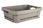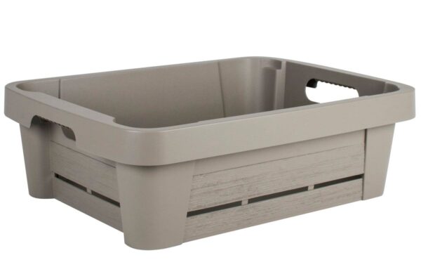 Sertifikuota tara daržovėms ir vaisiams laikyti. Modernus dizainas, smagus ir paprastas naudoti. Jame taip pat yra ergonomiška rankena, kad būtų lengva naudotis. UV stabilizavimas – neblunka saulėje išvaizda imituoja natūralią medieną talpa: 25L išmatavimai: 55 x 39,5 x 16,5 cm medžiaga: polipropilenas kilmės šalis: Prancūzija
