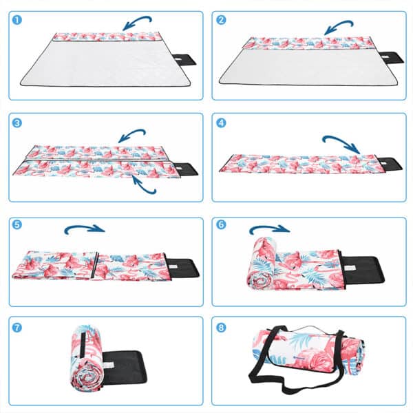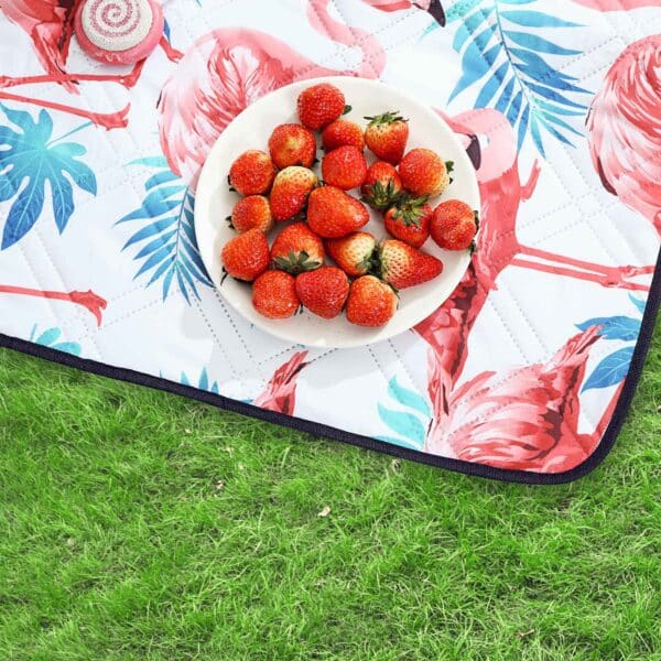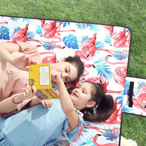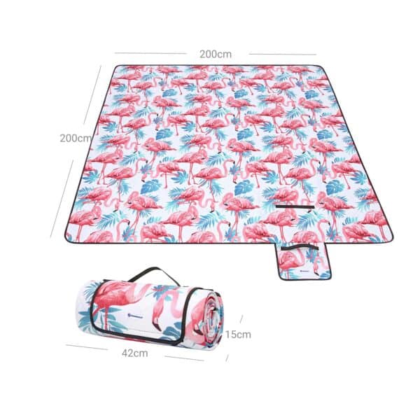Nesvarbu, ar ruošiatės pavasario piknikui, vasaros stovyklavimui, muzikos festivaliui ar tiesiog deginatės gamtoje, ši didelė flamingų iškylos antklodė / pledas 200×200 cm yra idealus aksesuaras dienai parke, paplūdimyje, sode ar lauko baseine.