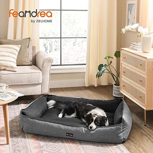 GERAS ŠUNS GYVENIMAS: paprastas, stilingas, minkštas ir tvirtai palaikantis – šis didesnis šunų guolis suteiks stiliaus jūsų namams ir jaukumo jūsų augintiniui. Nesvarbu, ar jūsų pūkuotas draugas susirango miegoti, ar padeda galvą ant patogių pakeltų kraštų, gulėdamas naujoje lovoje jis sapnuos saldžius ir raminančius sapnus.