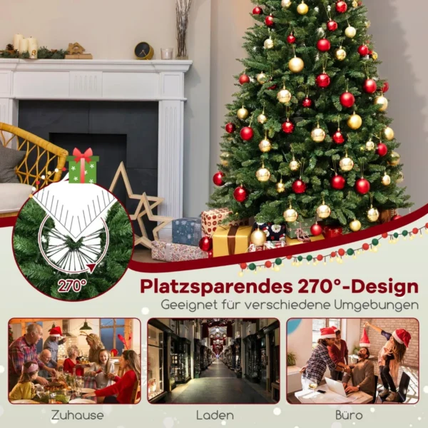 - 270° kampinė eglutė sutaupo vietos mažose patalpose ir imituoja visą medį ketvirčio apskritimo forma.