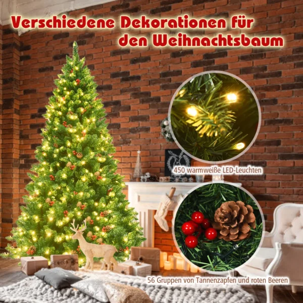 - Aukšta ir tanki eglutė su 1100 žalių PVC šakų, suteikiančių tikrovišką išvaizdą.