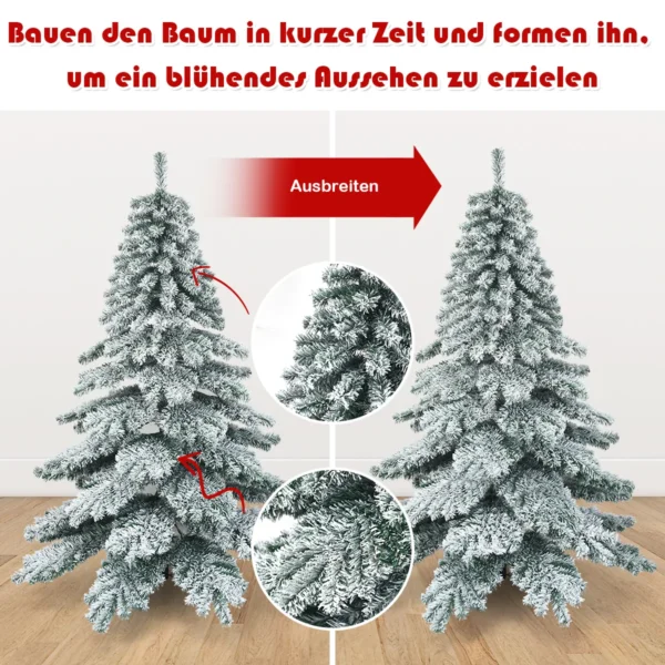 - Daugybė šakų – 657 vnt., su storais spygliais, padengtais sniegu, natūraliai atrodančiam rezultatui.