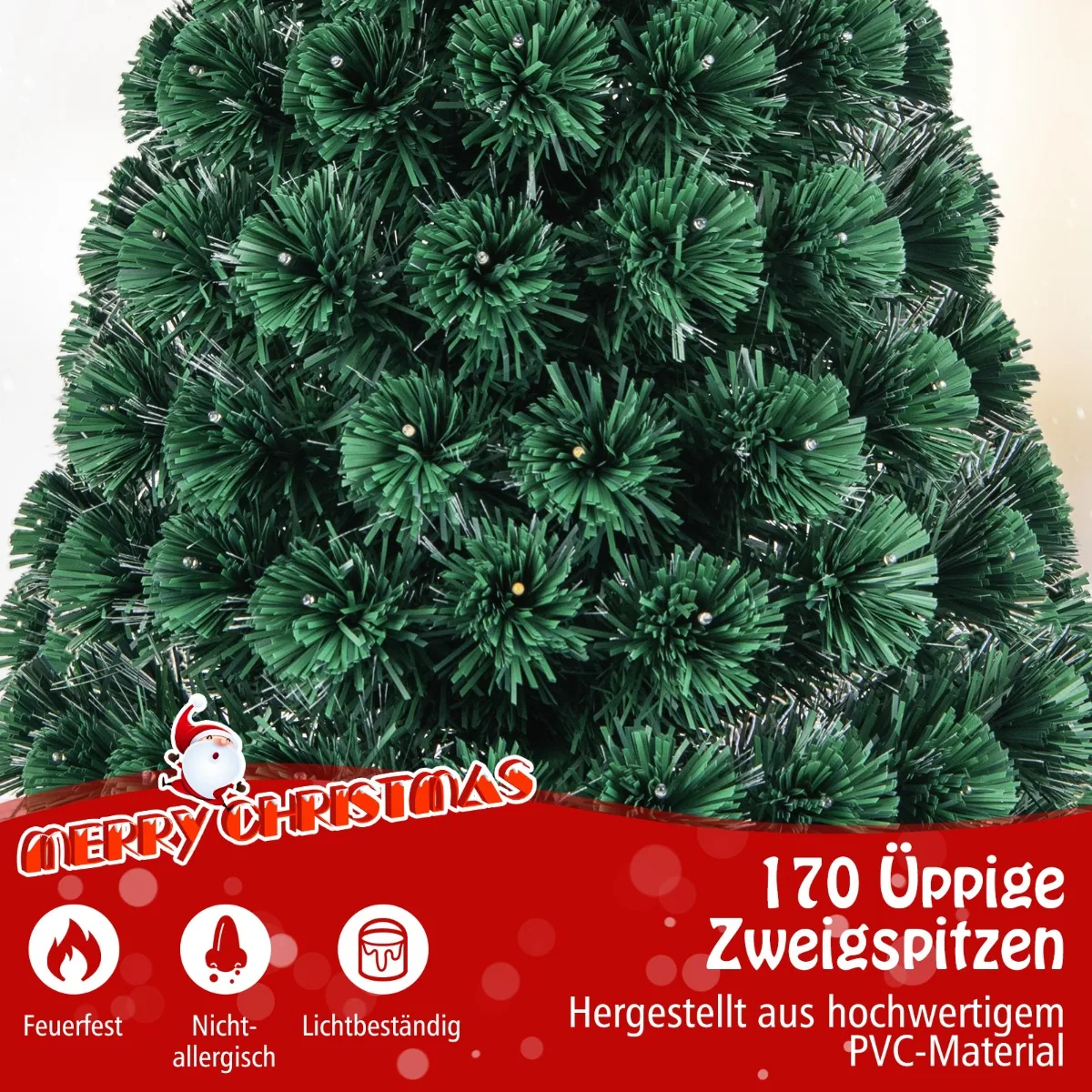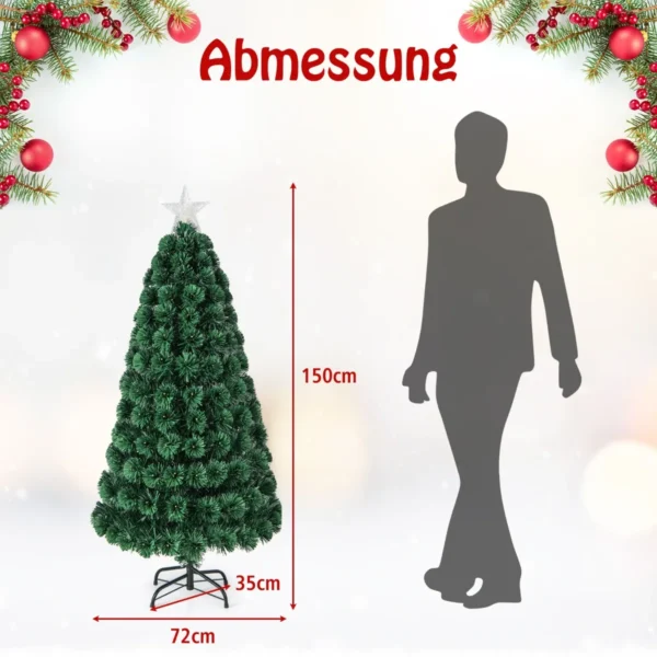 Dirbtinė eglė 72x150cm žalia spalva – puikus pasirinkimas Kalėdų dekoravimui namuose ar biure. Ši 150 cm aukščio eglutė turi vešlias šakas su 170 galiukų, pagamintų iš PVC, kurie užtikrina natūralų medžio vaizdą ir ilgaamžiškumą. Integruotos šiltai baltos LED lemputės bei spalvingi šviesolaidiniai dekorai sukurs šventinę nuotaiką jūsų kambaryje.