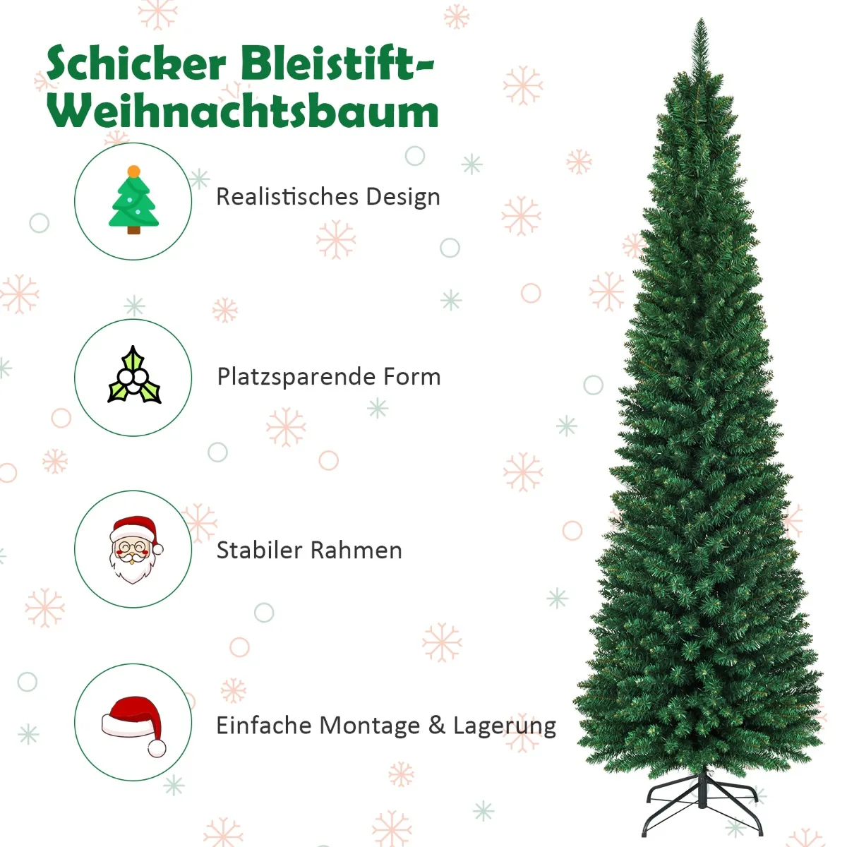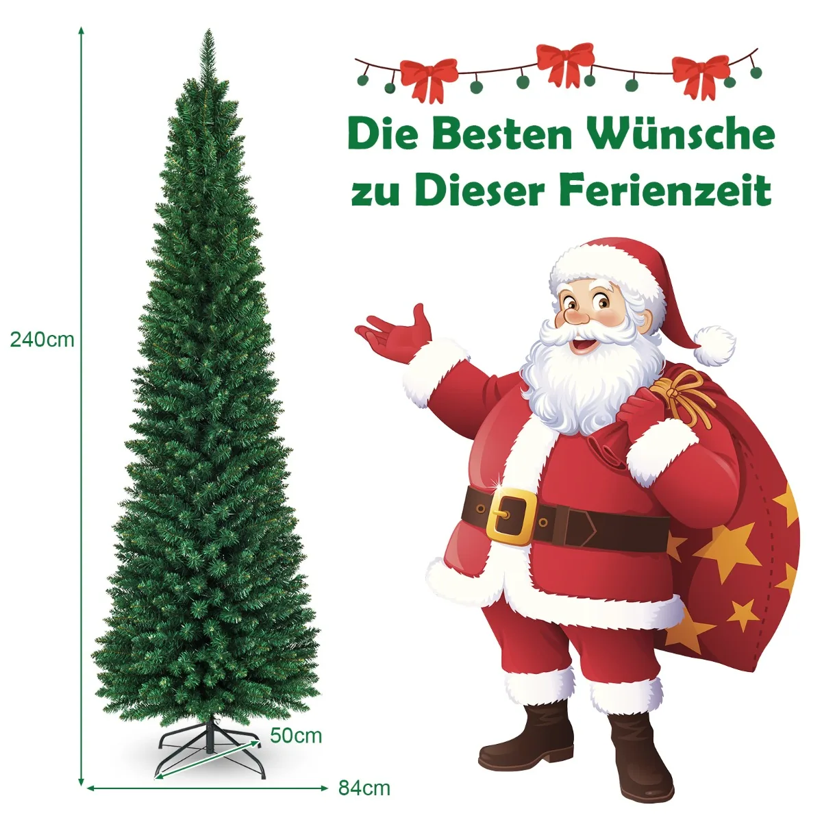 Dirbtinė eglė 84x240cm, žalios spalvos, puikiai tinka kalėdinei namų ar biuro atmosferai sukurti. Ši aukšta eglė išsiskiria natūralia išvaizda, tankiomis šakomis ir aplinkai nekenksmingomis medžiagomis. Jos plonas formos dizainas leidžia ją patogiai statyti net ir mažose erdvėse.