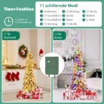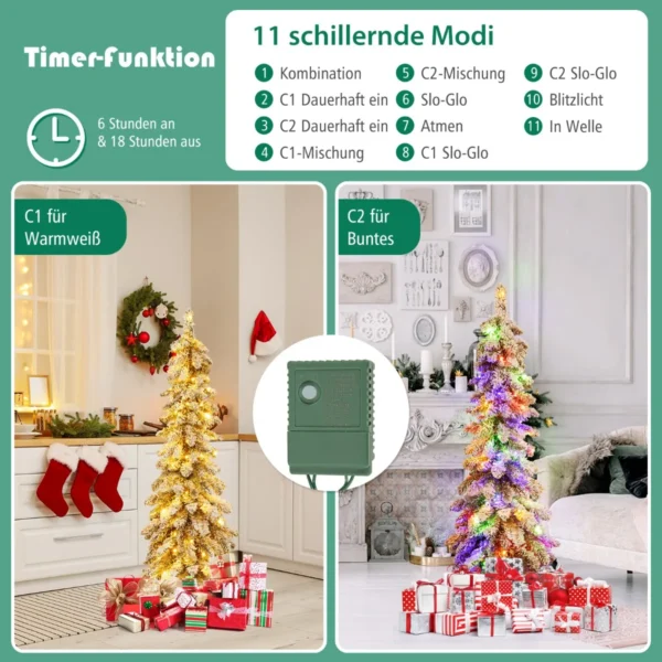 Dirbtinė LED eglė 45×120 cm, žalios ir baltos spalvos, puikiai tinka Kalėdų dekoracijoms namuose, biure ar kitose patalpose. Eglutė sukuria žiemos atmosferą su 225 šakų galiukais, padengtais baltu sniegu, bei iki 100 LED lemputėmis dviem spalvų režimais – šiltai baltos ir spalvingos. Šis dirbtinis medis yra atsparus ugniai, blukimui ir alergijoms, todėl saugus naudoti viduje.