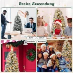 Dirbtinė LED eglė 66x150cm, žalios ir baltos spalvos, puikiai tinka kuriant šventinę atmosferą namuose, biure ar parduotuvėje. Eglė turi 130 šiltai baltų LED lempučių bei tikroviškus pušų spyglius, apibarstytus baltu sluoksniu, imituojančiu sniegą. Šis dirbtinis medis yra pagamintas iš atsparaus ugniai PVC ir pasižymi patogiu surinkimu bei saugiu metaliniu pagrindu.