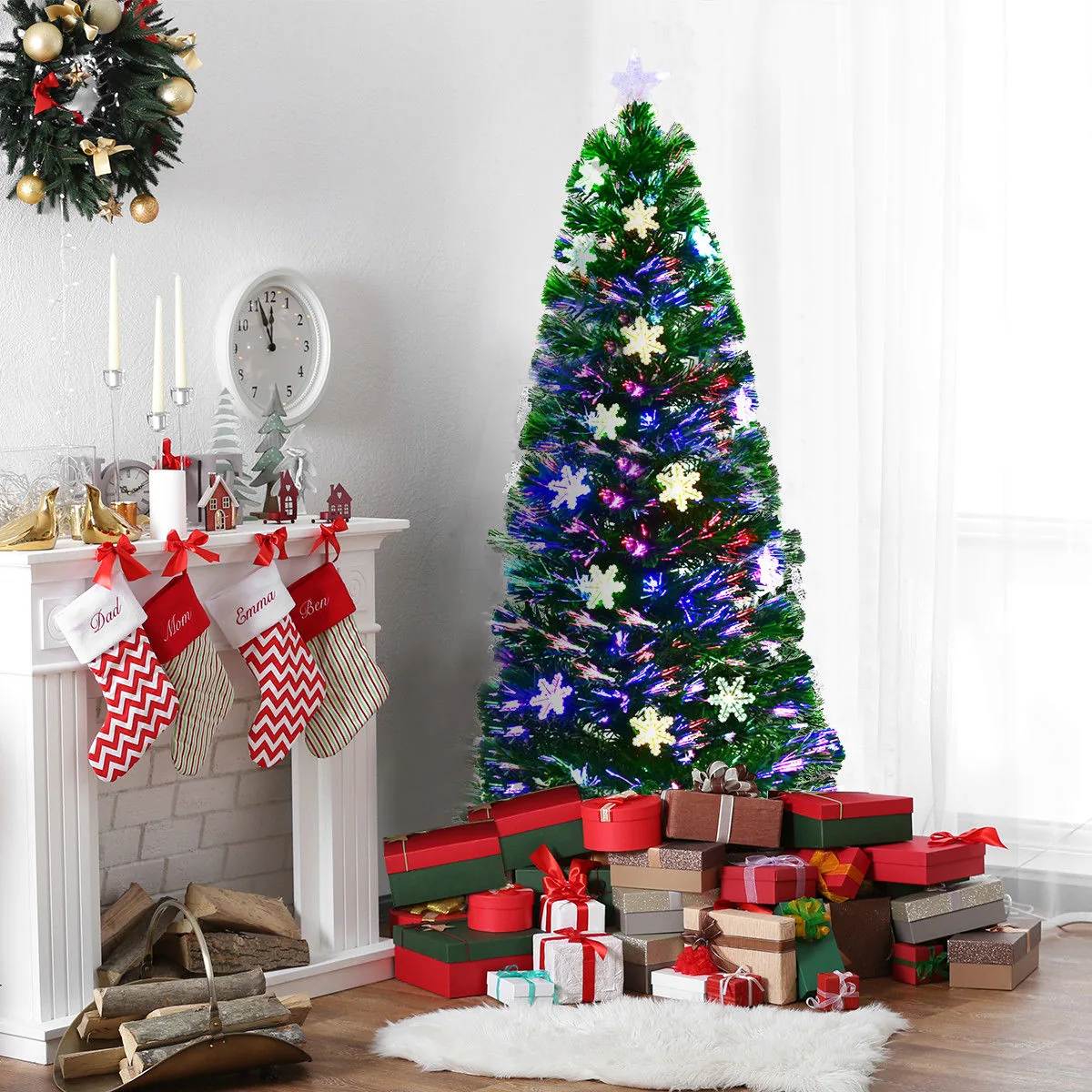 - Dirbtinė Kalėdų eglė žalios spalvos su LED šviesomis ir stiklo pluošto spygliukais