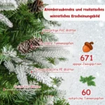 - Dirbtinė Kalėdų eglė su 671 vešlių šakų galiuku, pagaminta iš PVC ir PE medžiagų.