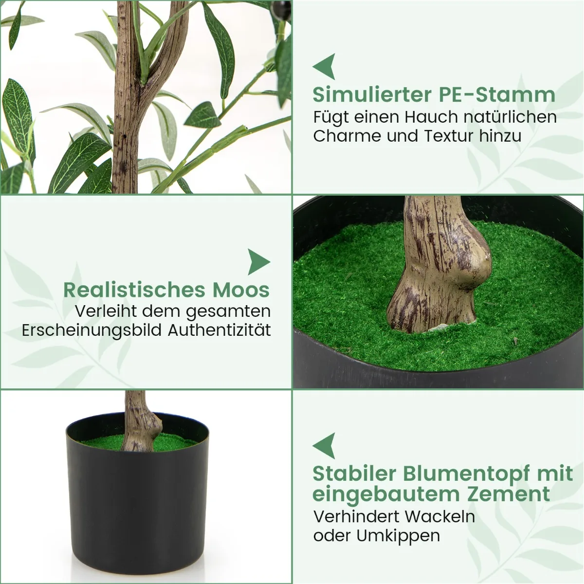 - Rinkinį sudaro 1 dirbtinis alyvmedis 130 cm aukščio su ryškiais alyvuogių vaisiais.