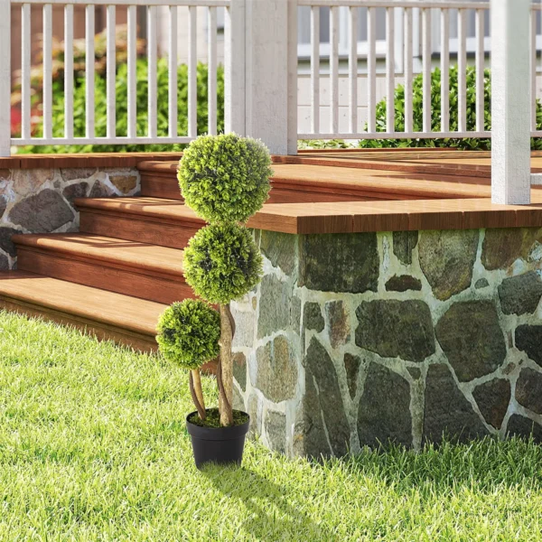 HOMCOM buksmedis, pagamintas iš patvaraus plastiko, stebina savo apgaulingai tikromis spalvomis ir faktūromis. Šis lengvai prižiūrimas dirbtinis augalas vazone visada išlieka šviežias ir patrauklus – nelaistomas. Tvirtai pritvirtintas cementinis vazonas garantuoja stabilumą, o dirbtinis augalas vizualiai padidina jūsų gyvenamąją erdvę, lauko zoną ar jūsų įmonės įėjimo zoną.