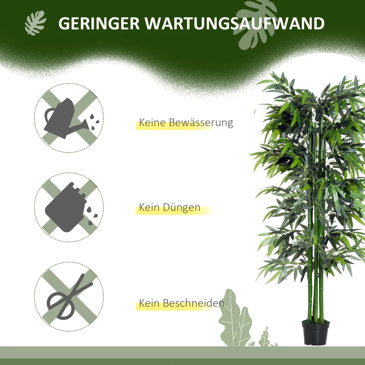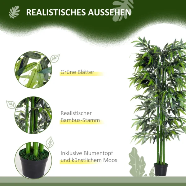 Šis „Outsunny“ dirbtinis bambuko medis yra puikus priedas, suteikiantis dekoratyvumo bet kokiems namams ar biurui. Puiki alternatyva tikriems kambariniams augalams, vazoninis lauko augalas nereikalauja mažai priežiūros ir nereikia laistyti. Pagaminta iš PE, tikroviškos išvaizdos, gyvą kambarinio augalo lapija ir stiebai, taip pat samanos juodame vazone padeda sukurti ramią atmosferą ir pagyvinti jūsų gyvenamąją erdvę.