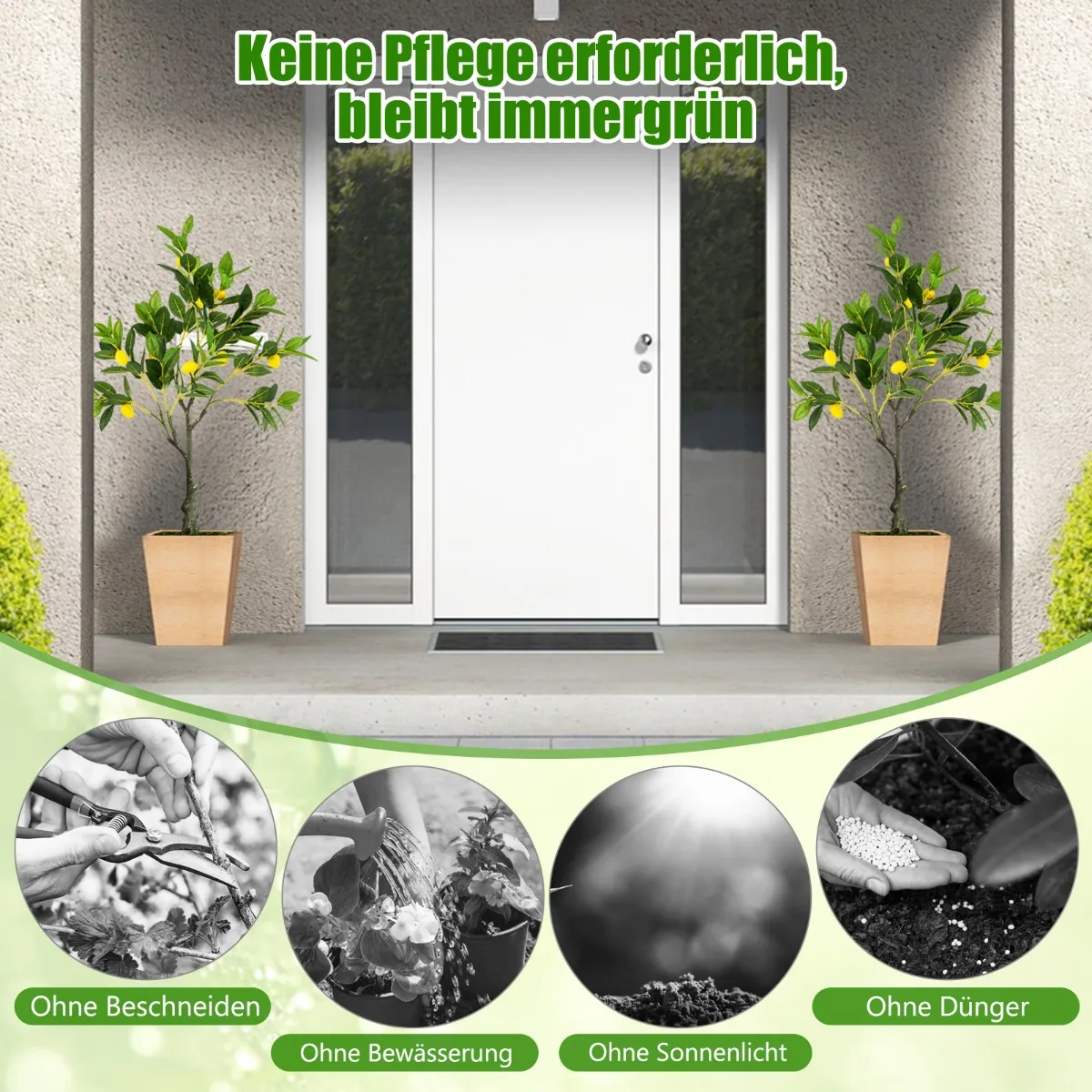 - Pagamintas iš ilgaamžių PEVA ir PE medžiagų, imituojančių natūralią augalo išvaizdą