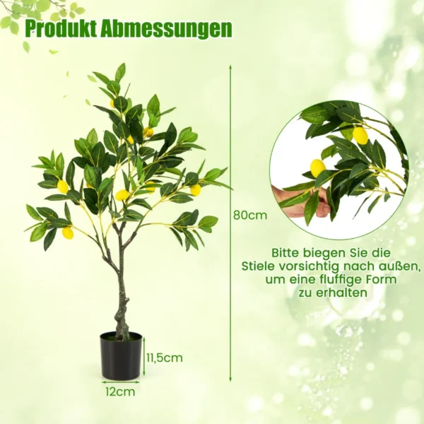 - 80 cm aukščio dirbtinis citrinmedis su žaliais lapais ir geltonais citrinų vaisiais