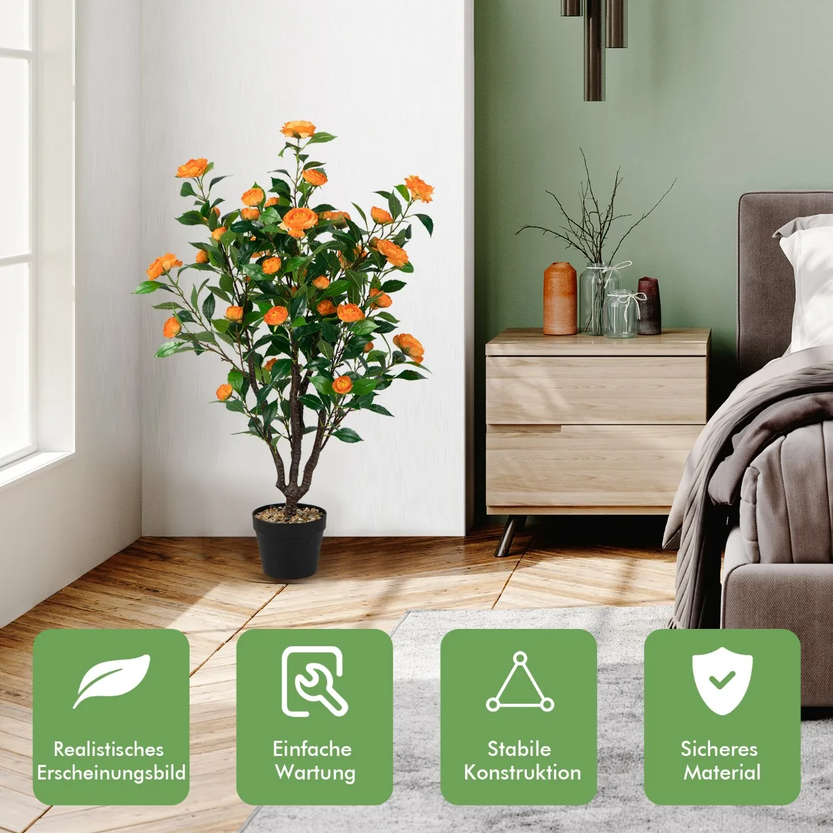 Dirbtinis kamelijos medis 58×102 cm – puikus pasirinkimas interjero dekoravimui be papildomos priežiūros. Šis dirbtinis augalas imituoja natūralaus kamelijos medžio išvaizdą su žydinčiomis gėlėmis ir lapais, suteikdamas gyvybingumo namams, biurui ar parduotuvėms.