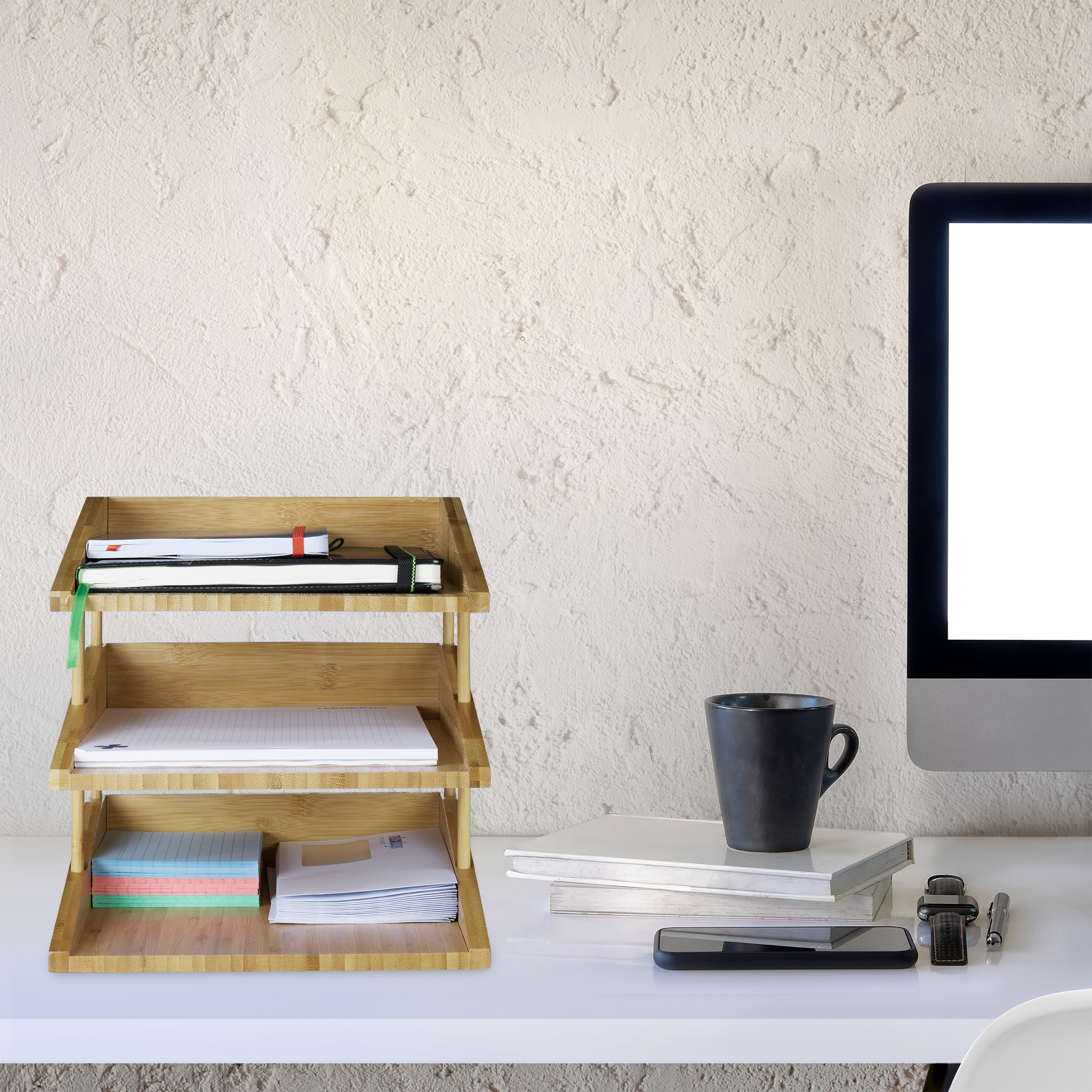 Šis šviesiai rudos spalvos dokumentų padėklas su 3 skyriais yra puikus sprendimas tiems, kurie vertina tvarką ir stilių. Pagamintas iš aukštos kokybės bambuko, šis padėklas ne tik padės jums efektyviai rūšiuoti ir tvarkyti dokumentus, bet ir taps elegantišku jūsų darbo vietos akcentu.