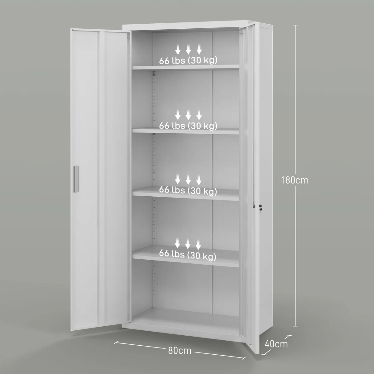 Kiekvienai darbo vietai reikia saugios vietos dokumentams laikyti. Naudodami HOMCOM dokumentų spintelę galite pasitikėti dydžiu stilingai. Aukštoje metalinėje spintelėje yra penkios vidinės lentynos, iš kurių keturios reguliuojamos, kad tilptų tiek smulkūs, tiek dideli daiktai. Dvi rakinamos durys garantuoja saugumą. Dėl milteliniu būdu dengto plieno konstrukcijos ši biuro spintelė yra ypač tvirta ir patvari.