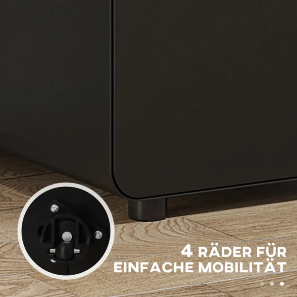 Pasirūpinkite, kad dokumentai būtų saugūs ir tvarkingi, naudodami mūsų biuro ritininį konteinerį. Su dviem praktiškais stalčiais biuro reikmenims ir pakabinamąja dilde, susukamame konteineryje yra daug vietos. Paprastas, kompaktiškas dizainas puikiai tinka mažesnėse erdvėse, tiek namuose, tiek biure. Dėl 4 pasukamų ratukų dokumentų spinta gali būti lengvai perkelta, o plieninis korpusas garantuoja patvarumą. Viršutiniame skyriuje esantis užraktas uždaro visus tris skyrius.