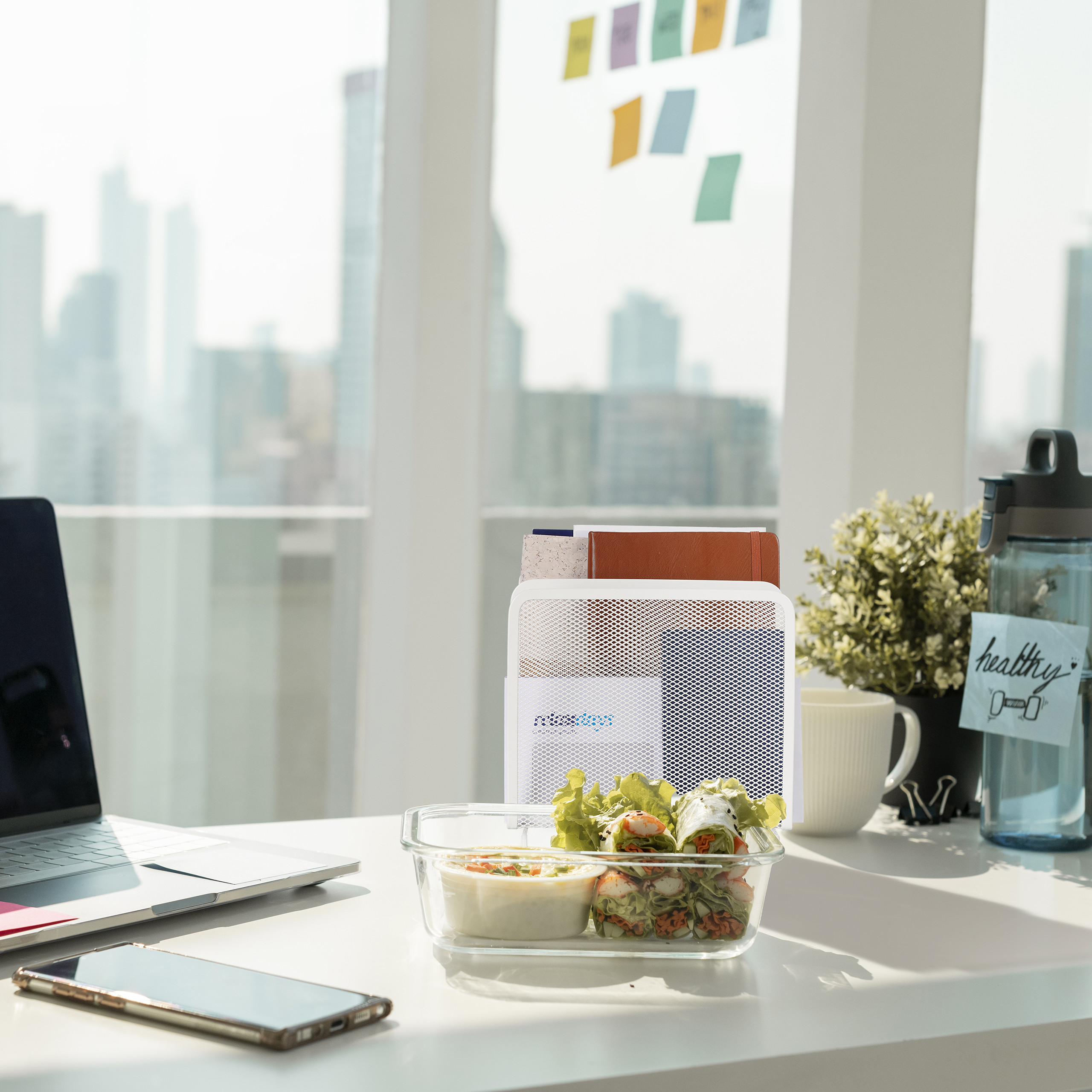 Erdvūs skyriai: Penki erdvūs skyriai leidžia lengvai surūšiuoti paštą, failus ir kitus dokumentus.