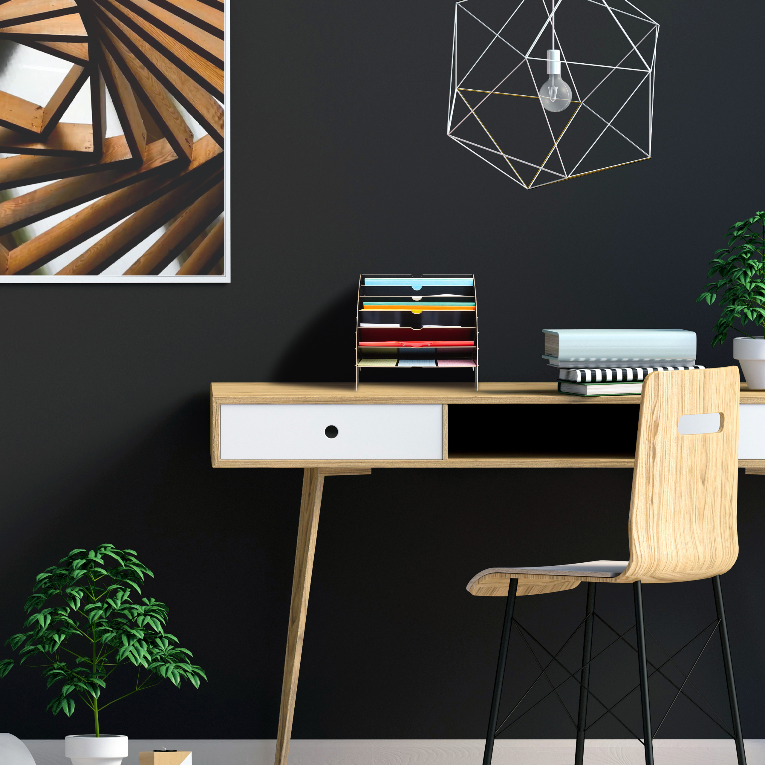 Įneškite tvarkos ir elegancijos į savo darbo vietą su šiuo stilingu dokumentų stovu. Jo minimalistinis dizainas ir juoda spalva puikiai dera prie bet kokio interjero, suteikdami profesionalumo ir organizuotumo jausmą.