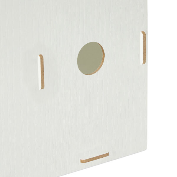 Estetiška išvaizda: Baltos spalvos stovas lengvai derės prie bet kokio interjero, suteikdamas modernumo ir švaros pojūtį.