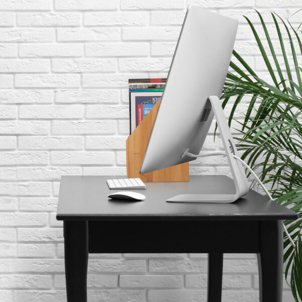 Šis bambukinis dokumentų stovas yra puikus pasirinkimas tiems, kurie vertina tvarką ir stilių savo darbo aplinkoje. Jo šviesiai rudos ir baltos spalvos derinys suteikia modernumo ir natūralumo pojūtį, kuris puikiai dera tiek biure, tiek namų darbo vietoje ar paauglio kambaryje.