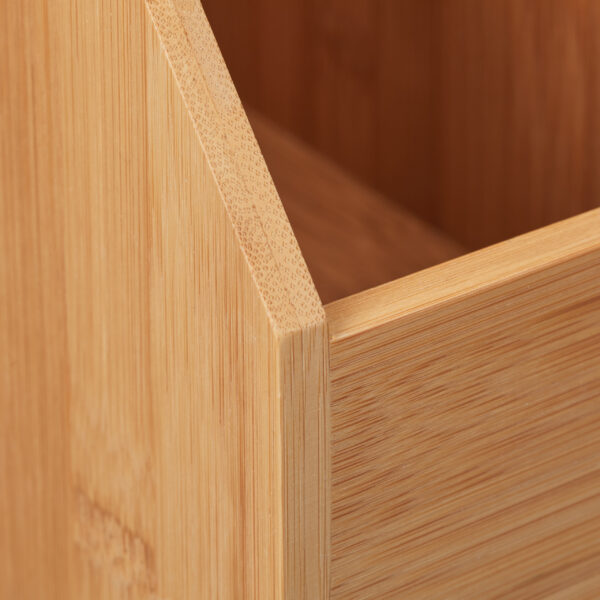 - Estetika: Natūralių bambuko tonų ir balto stalčiaus spalvų derinys suteikia elegancijos ir šiuolaikiškumo.