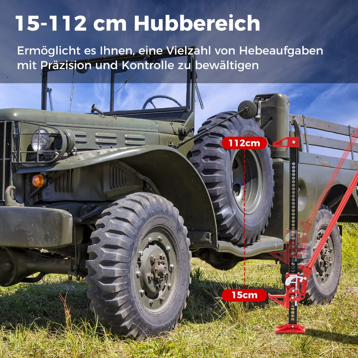 Domkratas 23x14x112cm, raudonos/juodos spalvos, skirtas įvairių transporto priemonių kėlimui ir traukimo darbams. Su reguliuojamu kėlimo aukščiu ir tvirta konstrukcija jis puikiai pritaikomas lengvųjų automobilių, visureigių, keturračių ir UTV transportui.