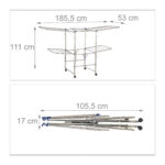 Ieškote efektyvaus ir stilingo sprendimo savo skalbiniams džiovinti? Mūsų drabužių džiovykla, kurios matmenys yra 111×185,5×53 cm, yra puikus pasirinkimas didelėms šeimoms, sporto komandoms ar bet kam, kas vertina vietą taupantį ir funkcionalų dizainą. Ši džiovykla ne tik suteikia daug vietos jūsų drabužiams, bet ir pasižymi elegantišku sidabrinės, juodos ir tamsiai mėlynos spalvų deriniu, kuris puikiai derės prie bet kokio interjero.