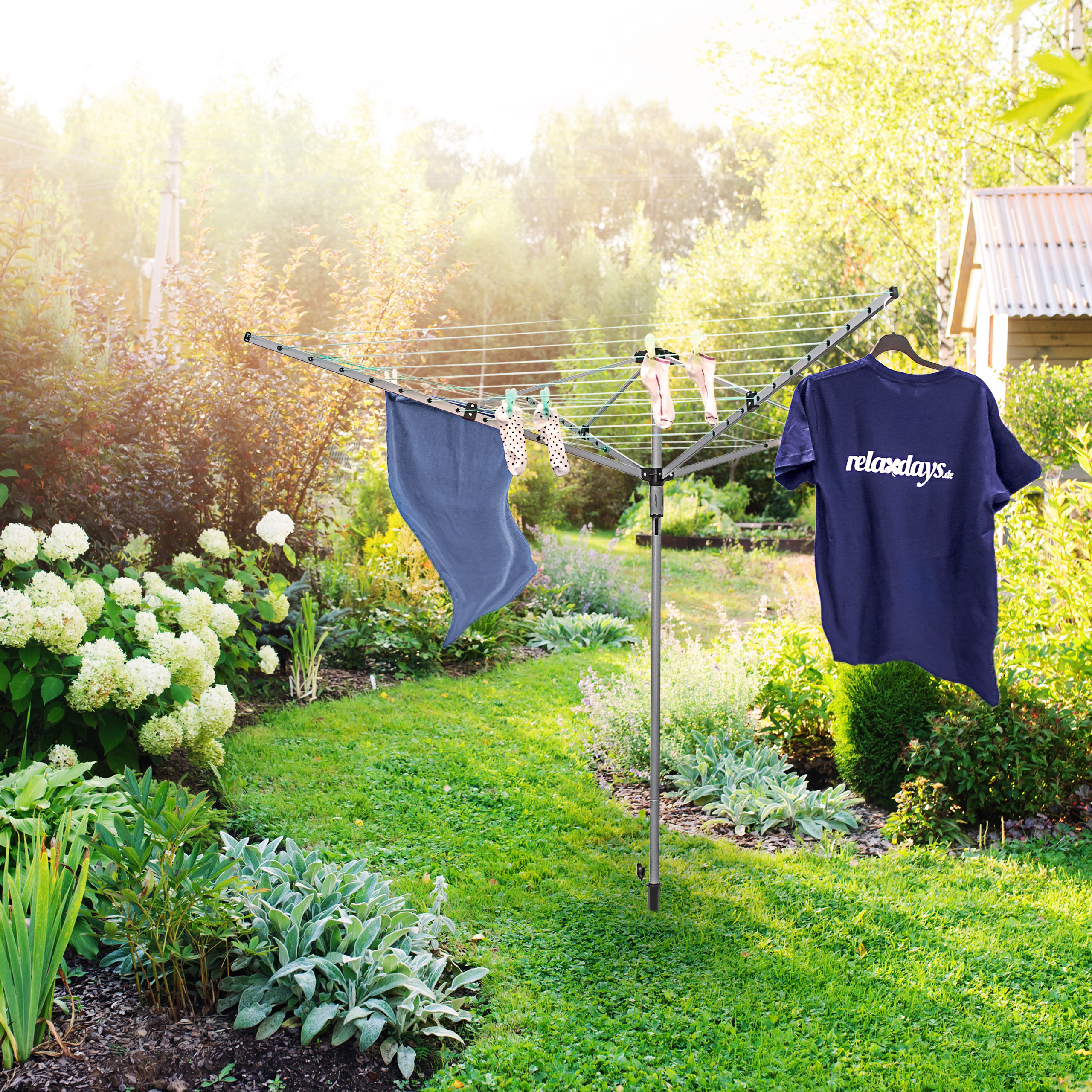 Įneškite gaivaus oro į savo skalbinius su mūsų elegantiška ir funkcionalia drabužių džiovykla. Pamirškite varginantį skalbinių virvelių tempimą per kiemą ar sodą. Ši tvirta sukamoji skalbinių džiovykla, skirta naudoti sode, yra puikus sprendimas tiek dideliems, tiek mažiems skalbiniams džiovinti.