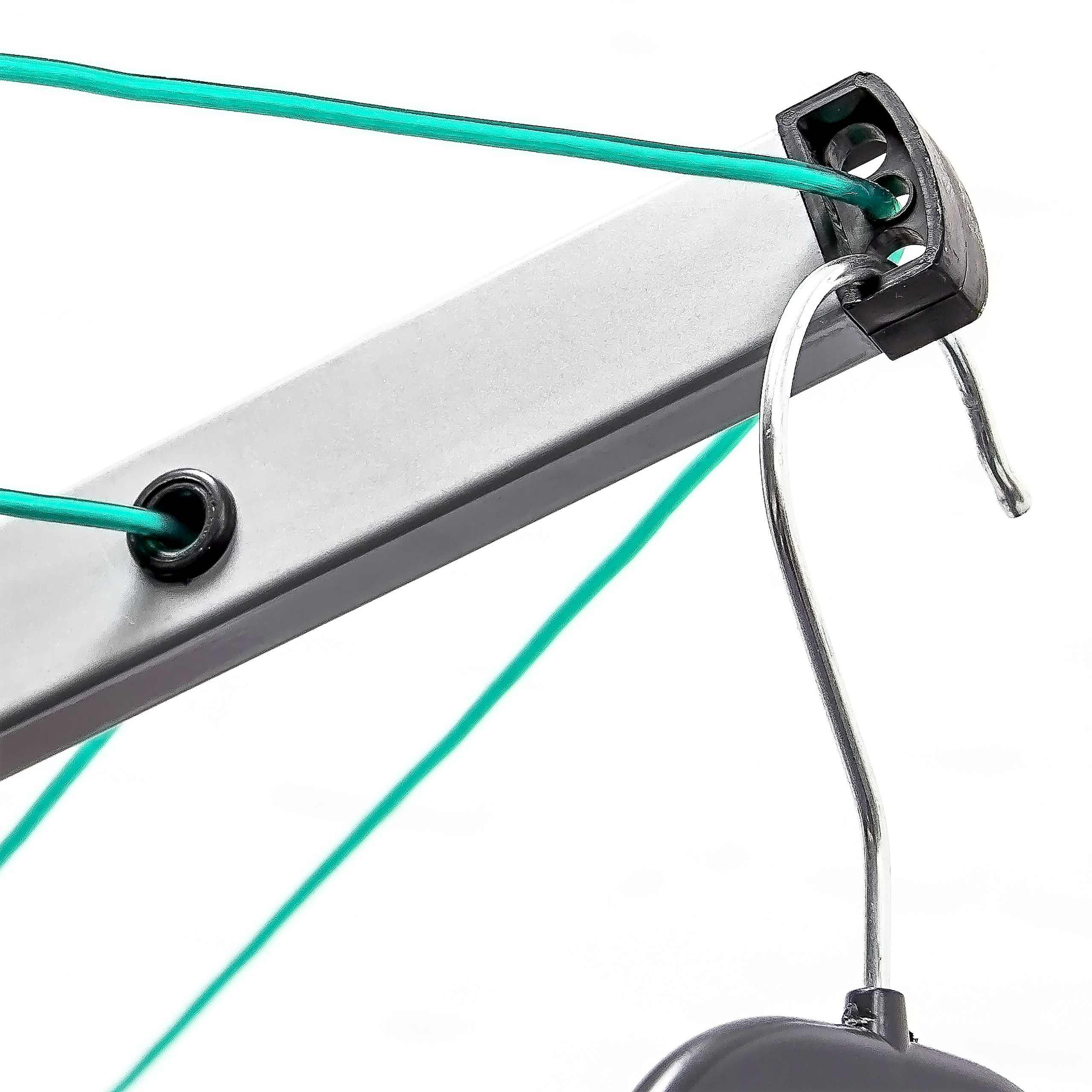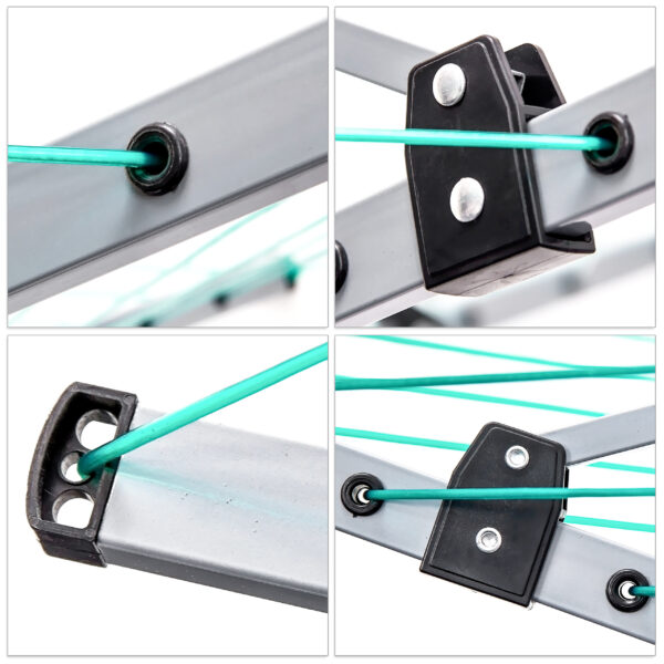 - Universalumas: Kiekvienoje iš 4 atraminių svirčių yra 2 pakabų laikikliai skylučių pavidalu, leidžiantys džiovinti marškinius ir palaidines be glamžymo skalbinių segtukais.