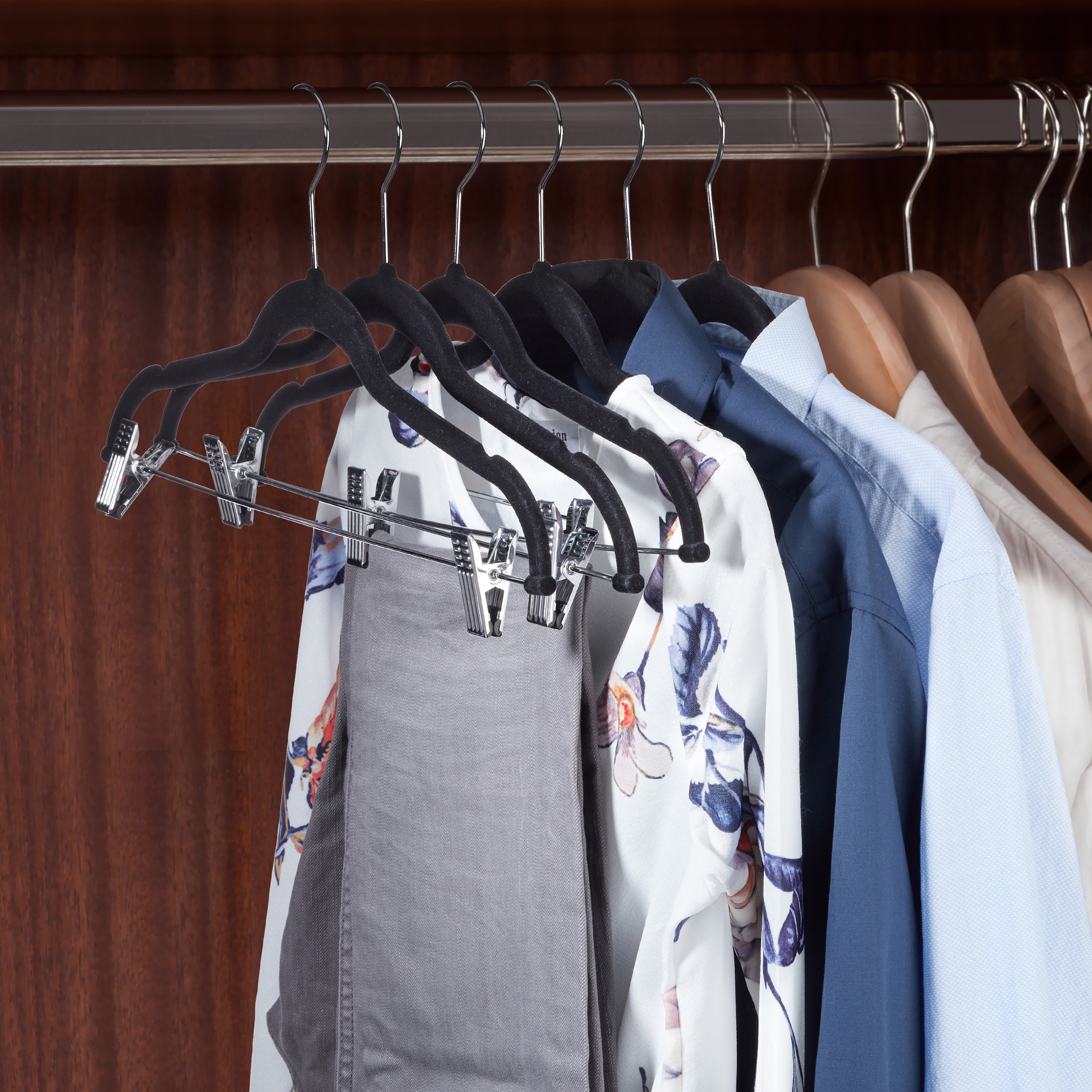 - Patikimas drabužių laikymas: Šoninės įpjovos neleidžia kostiumams, marškiniams ar palaidinėms paslysti, o aksominis paviršius užtikrina saugų drabužių kabinimą.