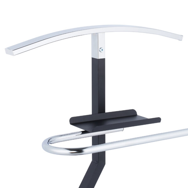 - Elegantiškas dizainas: Juodos ir sidabrinės spalvos derinys suteikia kabyklai prabangos ir universalumo, todėl ji puikiai dera prie bet kokio interjero.