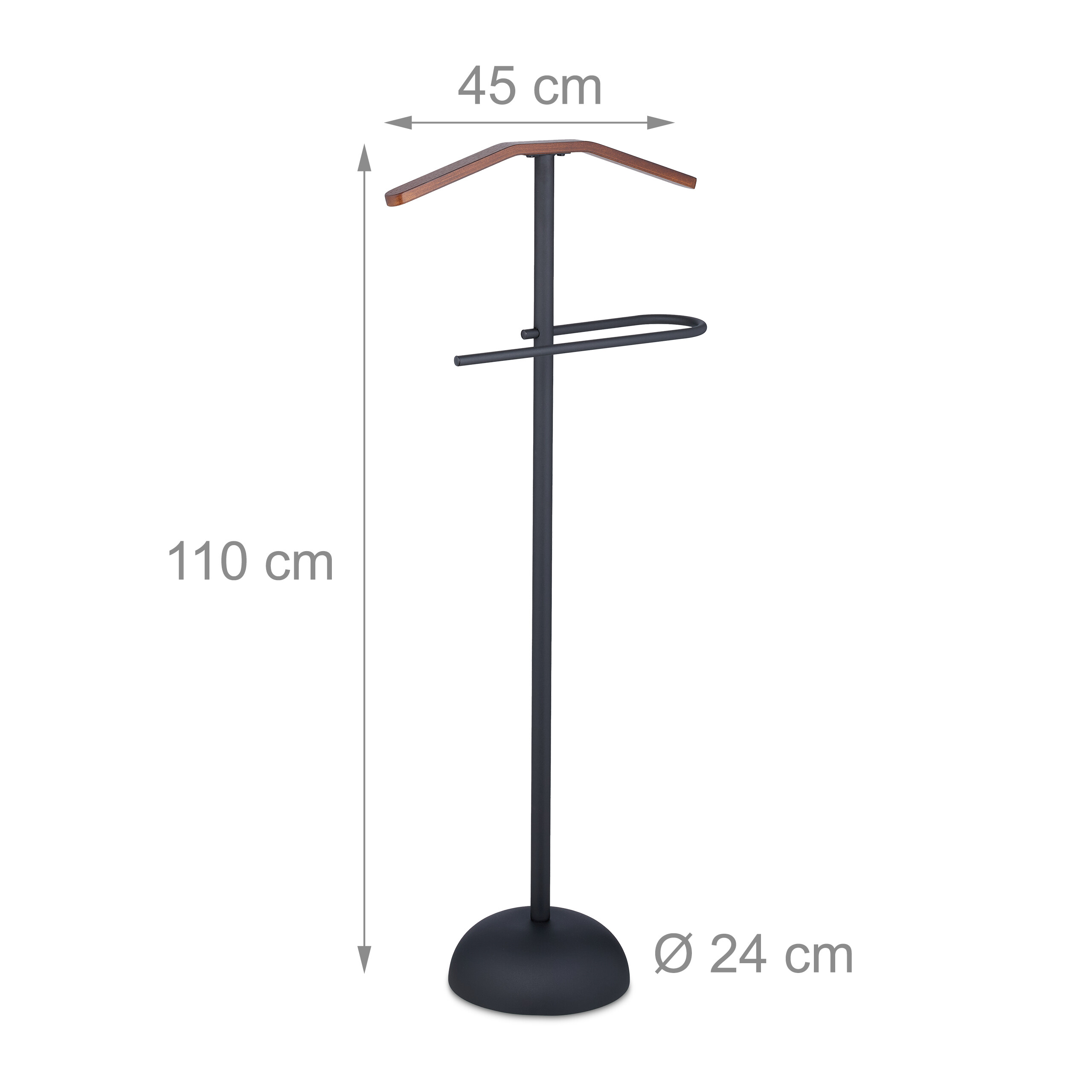 - Elegantiškas dizainas: Juodo plieno ir rudos medienos derinys suteikia kabyklai išskirtinį ir prabangų išvaizdą.