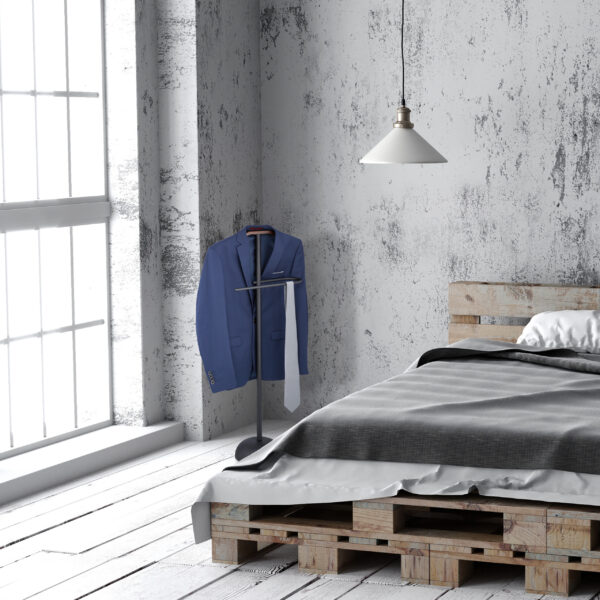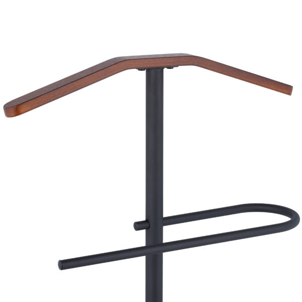 Pristatome išskirtinę drabužių kabyklą, kuri ne tik padės išlaikyti jūsų drabužius tvarkingus, bet ir taps stilingu interjero akcentu. Ši kabykla, sukurta iš juodo plieno ir rudos medienos, puikiai dera tiek moderniame, tiek klasikiniame interjere.