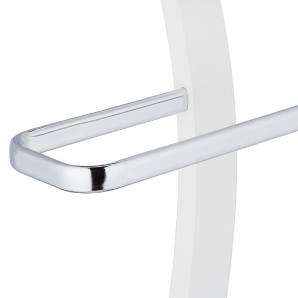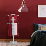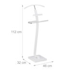 Pristatome šiuolaikinį drabužių liokajų, kuris ne tik puikiai atrodys jūsų namuose, bet ir padės išlaikyti jūsų drabužius tvarkingus ir nesiglamžytus. Šis elegantiškas baltos spalvos kostiumo stovas su sidabrinėmis detalėmis yra idealus pasirinkimas jūsų verslo aprangai.