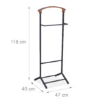 Pristatome išskirtinę drabužių kabyklą, kuri ne tik padės išlaikyti jūsų drabužius tvarkingus, bet ir taps stilingu interjero akcentu. Ši kabykla, sukurta iš juodo plieno ir rudos medienos, puikiai dera tiek moderniame, tiek klasikiniame interjere.